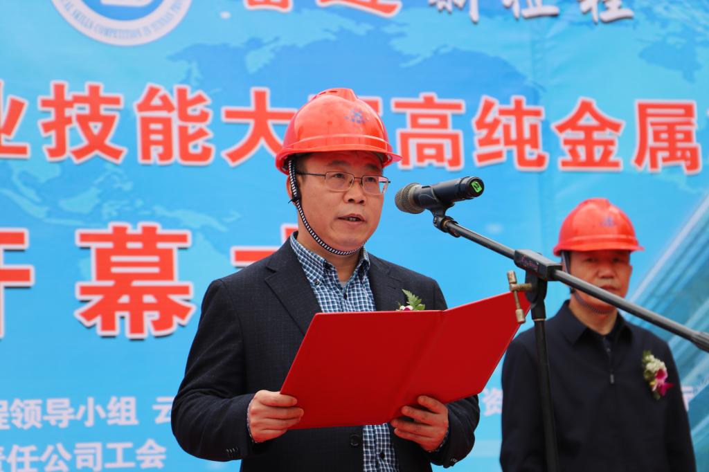 開幕式上,云南省總工會技術創新和職工素質建設工作辦公室二級調研員彭啟瑞宣布:云南省第十九屆職工職業技能大賽錫化工高純金屬冶煉工決賽開賽。
