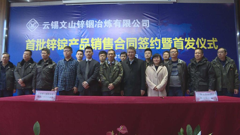 各簽約方在儀式上分別做了表態(tài)發(fā)言,并與文山鋅銦冶煉公司總經(jīng)理朱北平簽訂首批鋅錠銷售合同。隨后,參加簽約儀式的嘉賓和領(lǐng)導(dǎo)對首批產(chǎn)品的首發(fā)進行了剪彩。