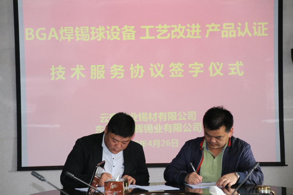 近日,為進一步提高錫材公司BGA焊錫球生產技術和產品質量水平,錫材公司與東莞市聯輝錫業有限公司簽署技術合作協議。